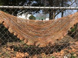 Hand knitted lace shawl in warm browns.