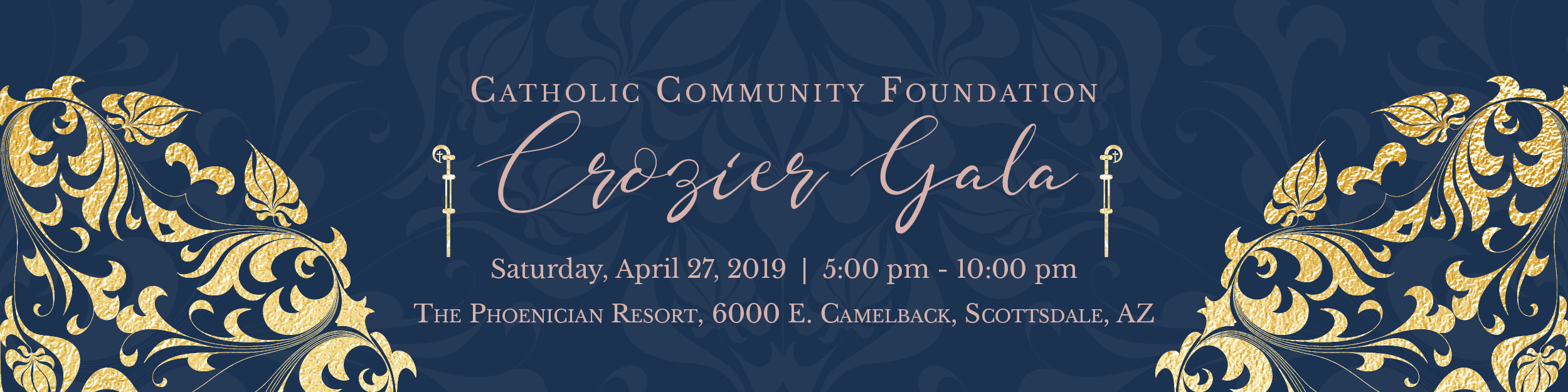 You can still participate in the auction!Thanks to the incredibly generous support of our community the Crozier Gala hosted by the Catholic Community Foundation and celebrating the 50th anniversary of the Diocese of Phoenix is officially sold out! You may still support the Foundation by purchasing a Santa Fe Golden Raffle Ticket, bid on silent auction items or make a donation.