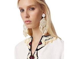 Rustic materials achieve next-level refinement on this leather Statement Earring - a fashionable way to pull of beach chic. The extremely lightweight pair is decorated with raffia, seed beads, wooden rounds and a cascade of seashell-tipped fringe. Made for pierced ears, clip back closure.