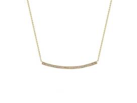 This coveted Sylvie Rose necklace is by Dana Rebecca Designs. Made of 14 carat yellow gold, and an elegant bar pendant encrusted with diamonds, this necklace compliments the brand's luxuriously classic aesthetic. This best-seller can be worn solo or layered with other pieces. Chain length is 17".
