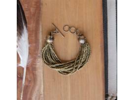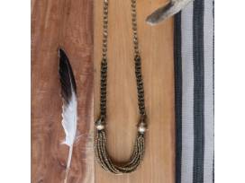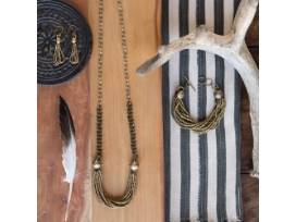 1Step out in style with this stunning jewelry set from HomArt. Brass beads strung on multiple leather cords flow together in this statement-making collection. Includes a necklace, bracelet, and earrings.