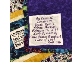 This original quilt was lovingly made by Carla Brauss Barnhart - '69. She is truly an artist ! This is quilt number 139.