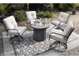 This outdoor fire pit chat set from A-1 Furniture & Mattress offers the perfect place to sit with friends and family to enjoy drinks and good conversation, whether it's a chilly fall day or a cool summer night. The rust-proof aluminum frames allow these pieces to withstand all types of weather, so they can be a gorgeous backyard addition for years to come.