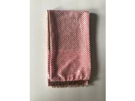 This scarf is a lovely shade of crushed velvet pink with confetti dots on one side and a solid, shimmery gold on the other. Gold star tassels adorn the end.