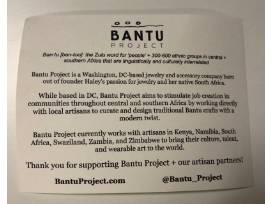 Bantu Project aims to stimulate job creation in communities throughout Southern Africa by working directly with local artisans to design and curate Bantu accessories with a modern twist. Bantu Project currently works with artisans in South Africa, Kenya, Zimbabwe, Lesotho, and Mozambique to bring their culture, talent, and designs to the world.