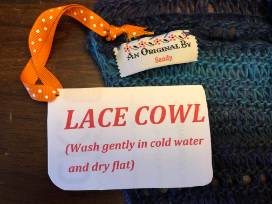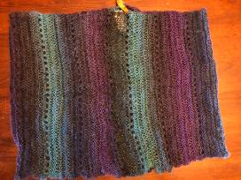 A beautiful blue and purple hand-knit cowl / infinity scarf lovingly made by the nana of Powell student Tom Mooney Joseph.