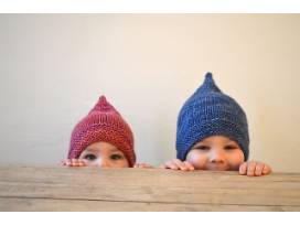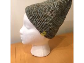 Sombrero pequeno "Troll" para ninos, hecho con suave lana de primera calidad. Hilo gris, verde y tostado. Hecho a mano por la abuela de Powell "Mimi". Lavar a mano y secar al aire. Un gorro cálido que no rasca