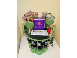 Wagner Realty's Coporate Office put together the 19th hole basket. This basket includes everything you need after a long round of golf - minus the cigars (smoking is bad for you). You will find a bottle of Makers Mark bourbon whiskey produced in Loretto, Kentucky , a bottle of Crown Royal Canadian whisky, a six pack of Goose Island Oktoberfest, two Wagner Realty tumblers, nine scratch off lottery tickets, two bottle openers, a golf tool and three Wagner Realty golf balls.