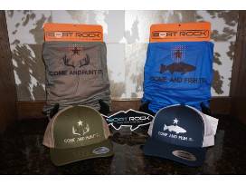 Be prepared for your next fishing trip with two (2) seven foot light action custom spinning fishing rods and Boatrock Outdoors apparel including two hats and two shirts.