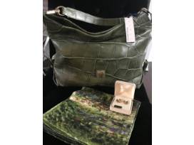 Dooney & Bourke designs and crafts instant classics with the perfect union of timeless American style, the highest regard for materials and craftsmanship, and a dedication to effortless functionality. Add this green D & B green crocodile purse to your collection along with a beautiful silk scarf and 14k gold hoop earrings.