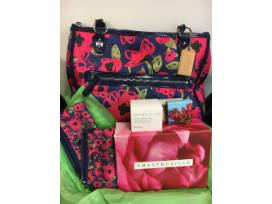 This Poppy Floral Print Large Hallie East West Tote Shoulder Bag by Coach is waiting to be added to your collection! It comes with two matching wristlets and its original protective bags, however there is no price tag. Keeping with the floral theme, a flower harmonizing creme and two cheek shades Laughter and Joy by Chantecaille, all made from botanical ingredients, is included.