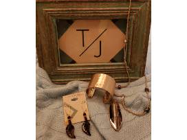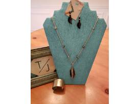 Marquise Beads Necklace with a detachable dark brown/gold pendant. Stone Leaf Dangle Earrings & A Hammered Cuff Bracelet.