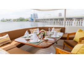 Carefully detailed, the Wendy 1 boasts four beautiful staterooms with en suite bathrooms, an expansive main salon, full kitchen, formal dining room, jacuzzi, and a main sundeck complete with a cocktail bar that makes it perfectly suited for entertaining. Depart from the Sandestin Marina and relax as you take in the beautiful sunset and cruise the Choctawhatchee Bay and Destin Harbor. Complete with perfectly paired cuisine, a night like this is why we choose to live in our little corner of paradise!