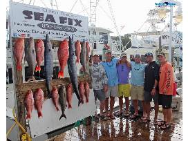 Get your fishing fix when you spend the day at sea on the Sea Fix. The Sea Fix is a 45-foot custom #1 hull, built in Key West, FL, on Hwy 1. Originally designed to be a commercial fishing hull, the boat is very wide and stable. This type of boat specializes in deep sea fishing for Yellow Fin Tuna, Sword Fish, Blue and White Marlin, Red Snapper, Amberjack, Cobia, King Mackerel, Grouper, and many other popular species. Fishing aboard the Sea Fix is all about fun and enjoying the beautiful Gulf of Mexico. Catering to families and children at every skill level up to experienced anglers, the Sea Fix crew will be sure your group has an unforgettable day on the water.