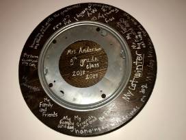 Give thanks for those gathered around your table with this beautiful Lazy Susan. Personalized with Grateful on the front and your child's class signatures on the back.