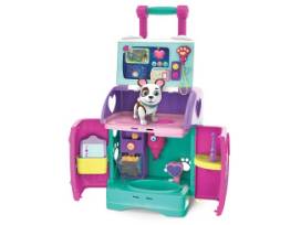 Designed for on-the-go care, the Pet Rescue Mobile is equipped with lights, music, phrases, and play medical tools and accessories, including a pretend EKG reader, talking stethoscope and light & sound control panel that locates pets in need! Doc's adorable pet friend Oliver is included, and kids will love helping Oliver feel better by checking his heartbeat and diagnosing boo-boos with the light-up play X-ray display! Give Oliver a bath and help him feel better with play treats! Fold up the mobile, lift the handle, and roll on the go.
