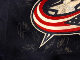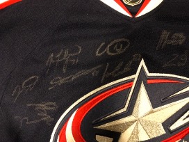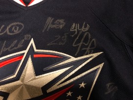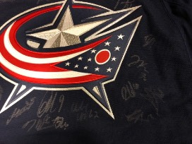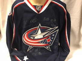 Show your love for the Jackets by taking home this team signed jersey! Jersey is a size large and is signed by each of the members of the 2017-18 roster. Item pictured here.