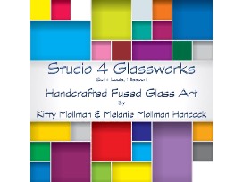 Fused bowl with blue and green spots by artist Melanie Mollman Hancock.