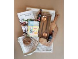 Creative goods for everyday living -- from your friends at MOD GEN! Enjoy a night in with cooking and cocktails with a sampling of MOD GEN's delicious and stylish entertaining set. Includes: 8 napkins, 1 table runner, copper-finish salad servers, cutting board, coaster set, cookbook, cocktails book, bitters from Bittercube and an "Ibiza Midnight" sculpture. This package is valued at $410.