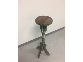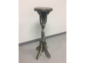 Hand made out of oak from the 1970's. Top has walnut stain, base is chalk painted in a custom blue/gray with highlights added; finished with 2 coats of lacquer. Stands 36 1/2" tall.