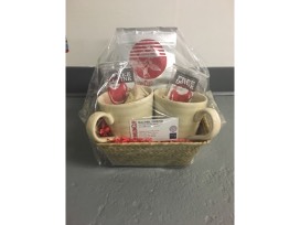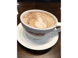 One pound of Crimson Cup's special coffee, two nice size mugs and four free drink cards.