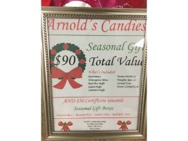 Full of yummy candy treats and a gift certificate for $50.00 towards a seasonal gift basket.