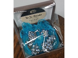 Handmade vintage bracelet in light blue hues.