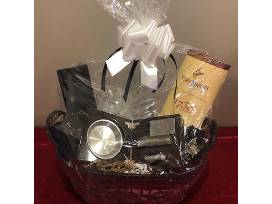 This basket is fine! Includes Walnut Finish Folding Wood Cigar Ashtray Set w/cutter, Cobber Torch Cigar Lighter, Quad 4 Jet Red Flame w/punch, Alaska Bear Gunmetal Cigar Cutter AMANCY Cedar Wood Lined Portable Travel Leather Cigar Humidor Case, Set of 2 Handmade Vintage Russian Crystal Brandy Cognac Snifers, Remy Martin 1738-750ml, $50 Humidor Downers Grove Gift Card, (2) $50 Eddie Merlot's Steakhouse Gift Cards. Any gentleman is sure to enjoy!