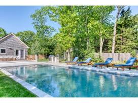 Escape the city for a 3-day weekend at this beautiful 5-bedroom East Hampton, NY home. Located minutes from both the ocean and bay beaches, it has a heated pool and hot tub, plus an additional pool house space and outdoor grill, fire pit, and bar area for fun in the sun.