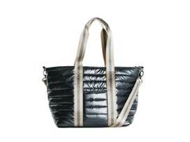 Our favorite original Wingman bag, shrunken to a mini version for those days we just need less! The horizontal quilted fabric is extra cozy and lightweight. The sporty handles can be carried or worn on the shoulder. Comes with a detachable guitar strap and our signature embossed canvas bottom. Pockets include: Inside zip pocket, inside water bottle pocket, outside front pocket. 11 1/2" x 18 1/2" x 6 1/2" Drop of shoulder strap: 9". https://thinkroyln.com/