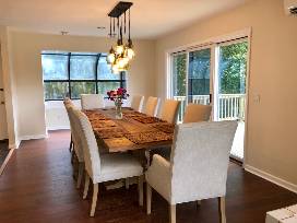 Welcome to your all-season home away from home, a newly renovated, bright and spacious 4-bedroom/3-bath cedar-siding home with an 80 foot long, 800 sq-foot deck on a private road in the beautiful Hudson Valley! From nearly every room, enjoy panoramic views of the sloping lawn, gorgeous foliage, stunning sunsets and star-filled night sky - and, seasonally, the Shawangunk mountain ridge in the distance. Secluded and private, but less than 90 minutes from NYC. 20 min to Beacon and New Paltz. Sleeps up to 13. Good for one stay of up to 3 nights. Dates subject to availability.