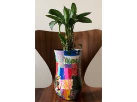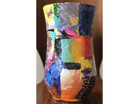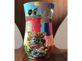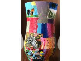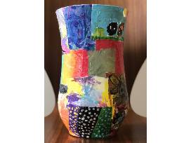Every child painted their own unique masterpiece and their art was decoupaged onto a vase to create this one of a kind, beautiful and enchanting vase!
