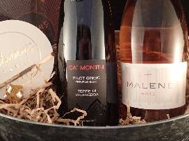 Enjoy a $50.00 gift certificate to Holman's Table, a restaurant offering new American cuisine, craft beer & cocktails in a chic, restored air terminal. Also included are two bottles of wine, a 2016 Ca'Montini Pinot Grigio and a 2017 Malene Rosé, a Holman's Table post card, and a set of Holman's Table coasters.