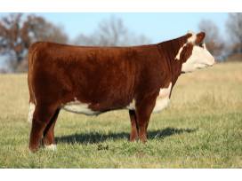 This 2 year old female was part of our Denver Pen of heifers in 2018. She's a polled Am Hereford daughter out of Jewel. Very few Jewel heifers leave our herd so this is a unique opportunity to buy one that has calved with a heifer calve by the calving-ease specialist ILR Peach of Mind. She's an easy keeper just like her dam with so much body mass and capacity, still moves out effortlessly and has a perfect udder in production. Here is an opportunity to acquire some of our elite genetics with the work already done.