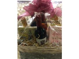 Gift Basket with Houdini Lever Corkscrew Set, Cheese Knife Set, Assorted Napkins, Chocolates and 5 bottles of wine.
