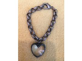 7-1/2" Chunky 11mm Antiqued Silver-Plated rolo chain bracelet with a soldered faceted crystal heart charm.