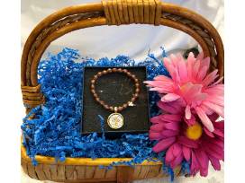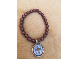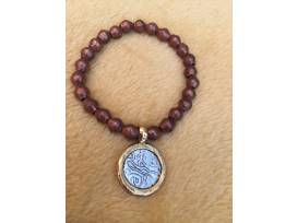 7-1/2" Ethiopian Copper Bicone Beaded Bracelet with a Gold Filled Pirate Coin
