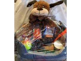 - Doggie basket with toys, treats, etc.