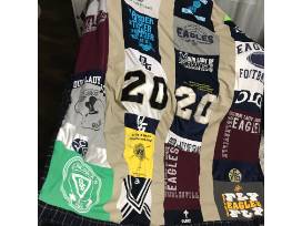 You have to see this to appreciate its unique beauty and memories. The Class of 2020 quilt was made with shirts from past spirit wear, themes, and jerseys tied together with OLG colors.