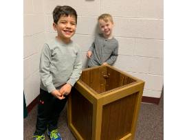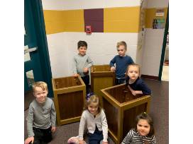 Enjoy these 3 wooden planter boxes handmade by Mr. Brock with OLG preschoolers staining them.