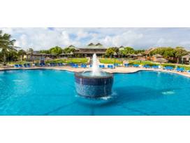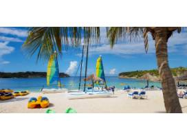 Relax for 7-9 nights with resort waterfront accommodations with the whole family. This eco-friendly Caribbean beachfront resort has two white-sand beaches, four pools, trails to historic Devil's Bridge, four restaurants, water sports, kids club, mini golf, mini cinema and the Tranquility Body & Soul Spa. Perfect for a romantic hideaway or family vacation.