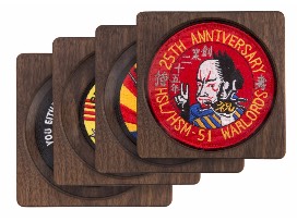 -set of 4 wooden coasters for patches made by Waterfront Woodworking and donated by MilBoutique, both Navy spouse-owned businesses.
