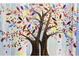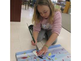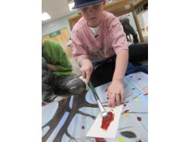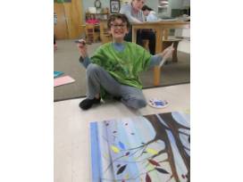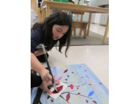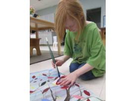The painting was done by lower elementary children with the guidance of our resident artist and upper elementary assistant, Jenny McLeod. The children were asked to consider balance, shape, and color as they approached the painting. With hints of Kandinsky and other impressionistic features, this painting is sure to catch the eye of any visitors while on display in a prominent space in your home.