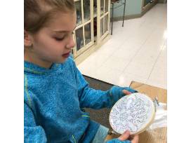 In addition to art, mandalas challenge the maker to focus and use planning as they are created with lines and symmetry. It is peaceful and meditative work that calms and clears the mind.