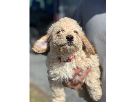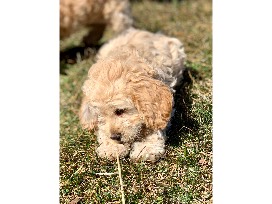 This adorable Cockapoo "Brick" born January 5, 2019, is looking for a nice new family! Kid friendly and impossible not to love! Dad is a miniature poodle, and Mom is a cocker spaniel. Shots, papers and bill of health included. Ready to move in!