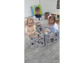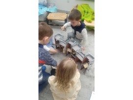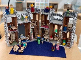 This imaginative wooden castle play house painted and decorated by the children of 4N will inspire and delight! The castle opens up to reveal rooms with staircases and secret draws to hold treasures. Along with the castle, each child has created beautiful little wooden peg doll families, complete with Knights, Kings, Queens, brothers, sisters and even a few babies. It can be yours to take home to bring to life! PRICELESS!!!