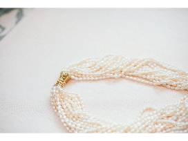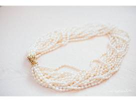 Multi-strand fresh water pearl necklace approximately 20 inches with 14k yellow gold clasp. This is an estate piece in beautiful condition.