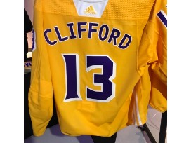 Bid to win a LA Lakers themed warm-up jersey signed by #13 Kyle Clifford.