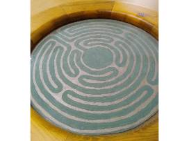 Trace the path to the center using your finger rather than your feet. Or just hang it on the wall and enjoy the handcrafted frame by Jim Grazide.