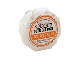 This package also includes a bottle of wine and a round of Four Fat Fowl's St. Stephen Cheese.